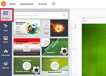 Bei Dauerkarten für Vereine wählen Sie die gewünschte Design-Vorlage und passen diese für Ihre eigenen Dauerkarten an.