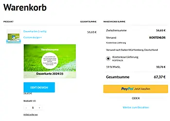 Auf unserem Druckshop können Sie Dauerkarten, Plastikkarten und Sticker selbst online gestalten und bestellen.